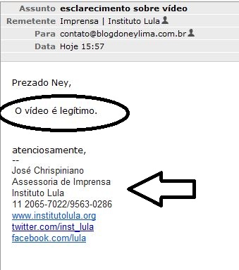 Após receber vários comentários de leitores do Blog, questionando que o vídeo exibido no comício do candidato a prefeito José Augusto Maia (PTB), seria idêntico a um vídeo enviado por Lula para a campanha do candidato Izaias Regis (PTB) de Garanhuns, gerando a impressão de fraude, o Blog do Ney Lima encaminhou o questionamento para o assessor de imprensa do ex-presidente Lula, José Chrispiniano, responsável pelo departamento de comunicação do Instituto Lula.